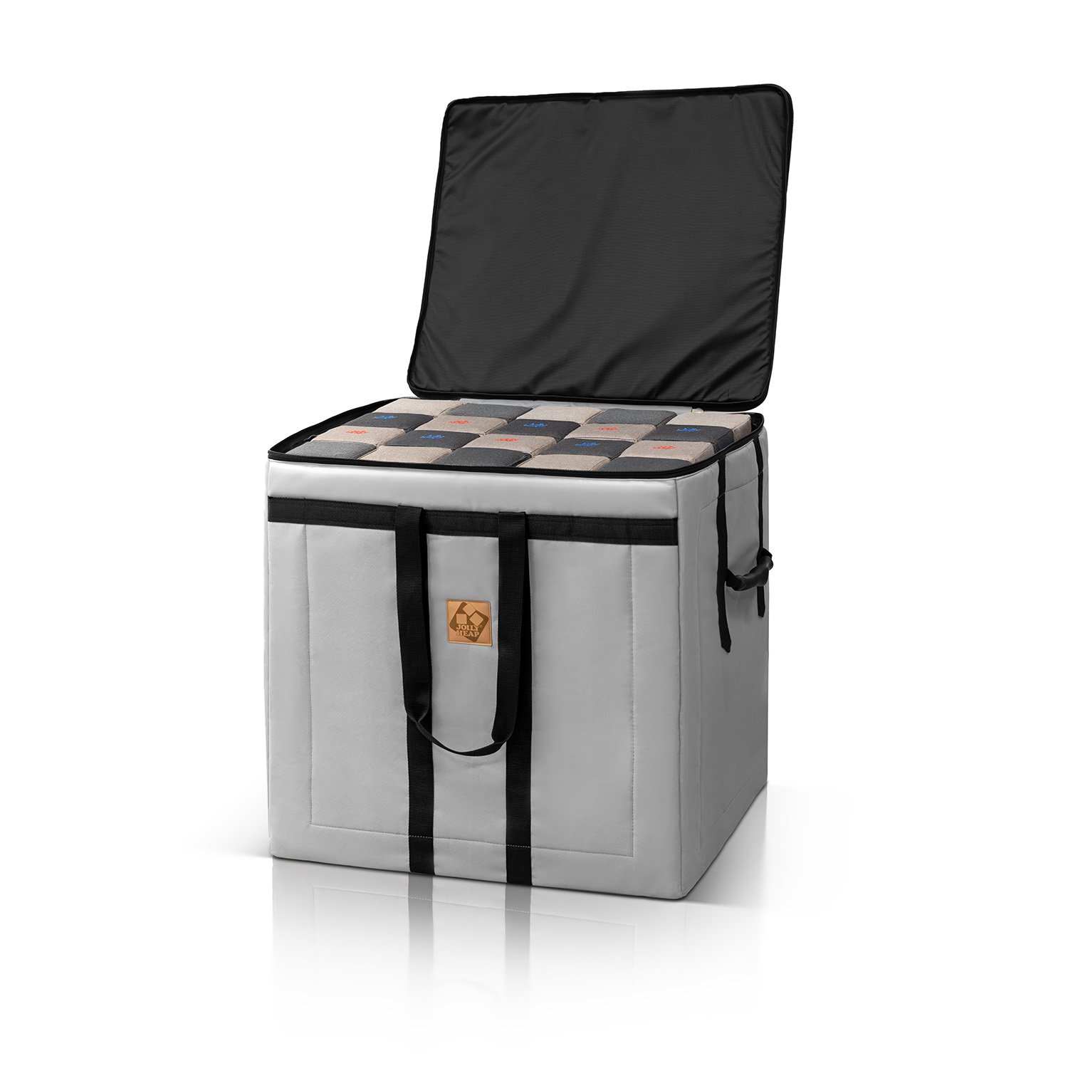 Mai mult decât o simplă soluție de depozitare, capacul poate fi folosit și ca parte a jocului – servind drept țintă pentru jocurile de aruncare sau, atunci când este umplut cu cuburi, ca o măsuță compactă sau un element de șezut.